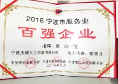 2018寧波市服務(wù)業(yè)百?gòu)?qiáng)企業(yè)